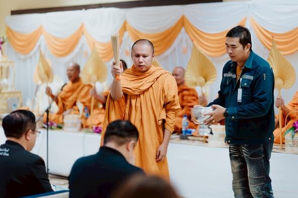 บรรยากาศเต็มไปด้วยรอยยิ้มและความอิ่มบุญในพิธีตักบาตรข้าวสารอาหารแห้ง แด่พระสงฆ์จำนวน 9 รูปจากวัดตากวนคงคาราม พร้อมร่วมพิธีสักการะศาลพระพรหม เพื่อขอพรให้การดำเนินงานตลอดปีนี้เป็นไปด้วยความราบรื่น มั่นคง และปลอดภัยในทุกมิติ