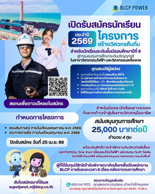 โรงไฟฟ้าบีแอลซีพี เปิดรับสมัครนักเรียนเข้าร่วม “โครงการสร้างวิศวกรคืนถิ่น ประจำปี 256...